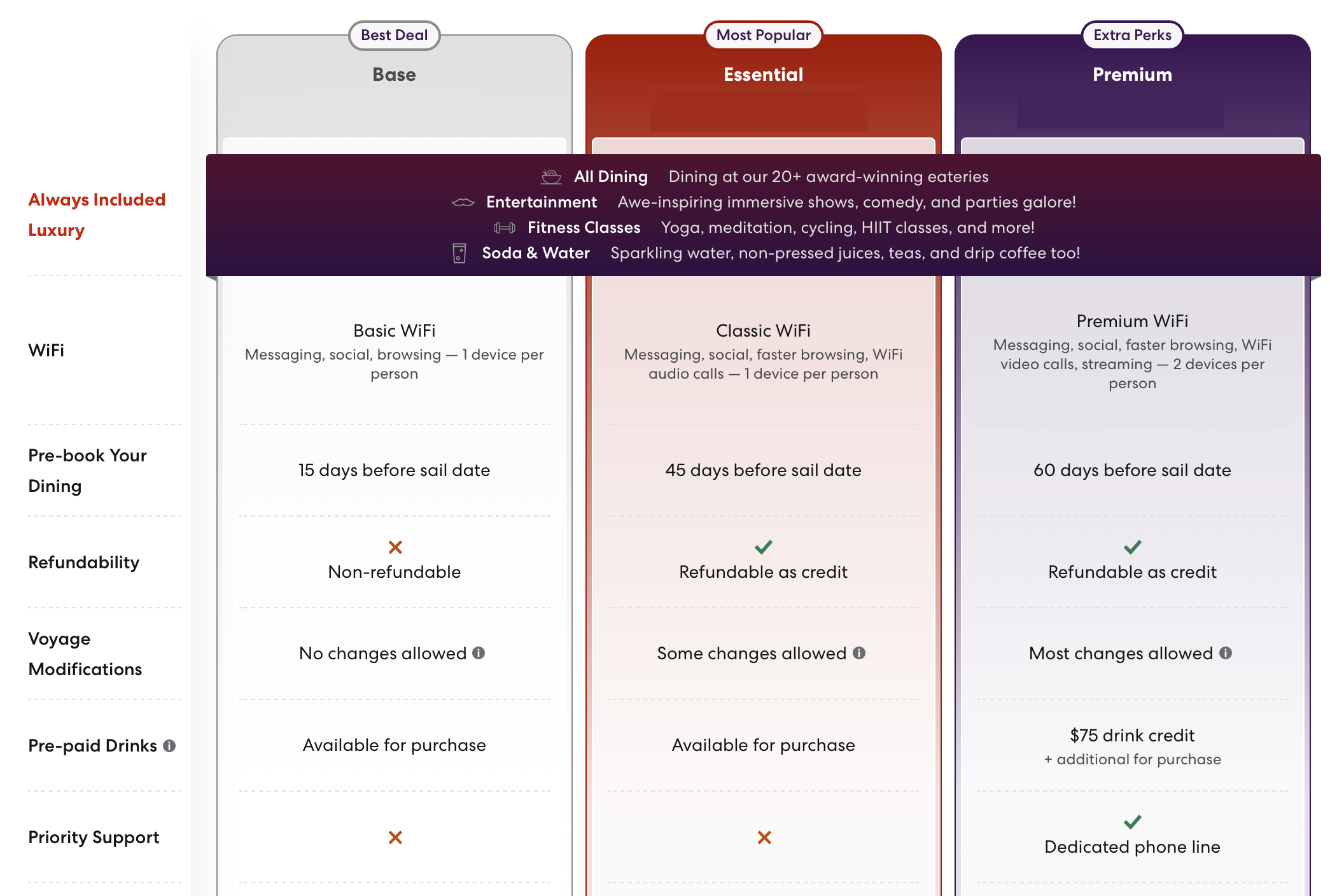 Included Everything — Wi-Fi, all restaurants, tips, group fitness classes, and essential drinks.